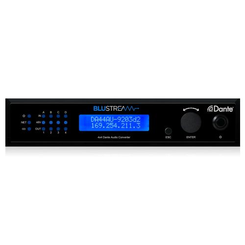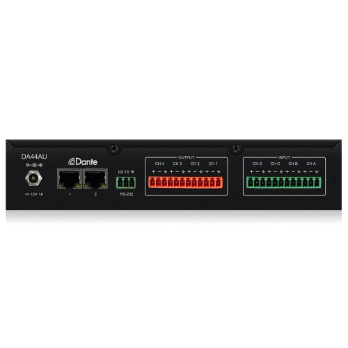 Our DA44AU is a four input / four output Dante® digital audio converter.
