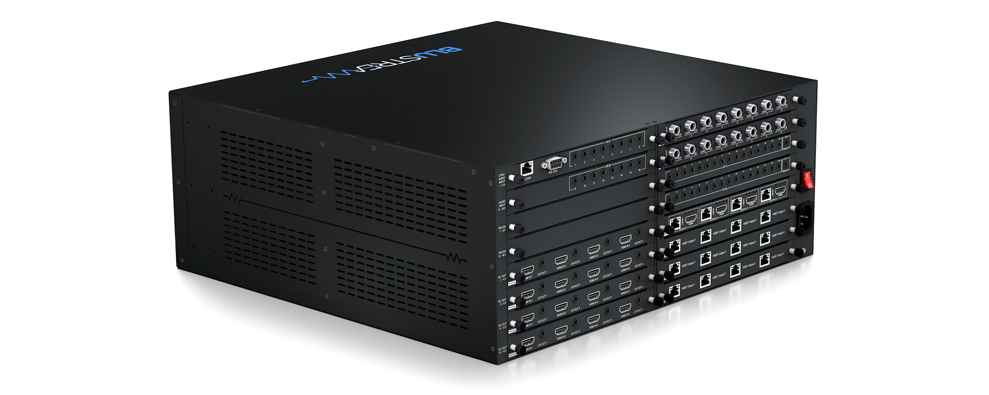 • 16 x IR inputs for distribution of IR to compatible Blustream HDBaseT™ receivers