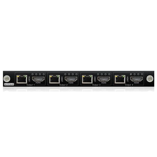 The PRO-OUT4TL-V2 output board offers 4 x independent HDBaseT™ outputs utilising CSC technology allowing support of HDMI 2.0 4K 60Hz 4:4:4 (18Gbps) HDCP 2.2 signal distribution up to lengths of 40m (1080p to 70m).
