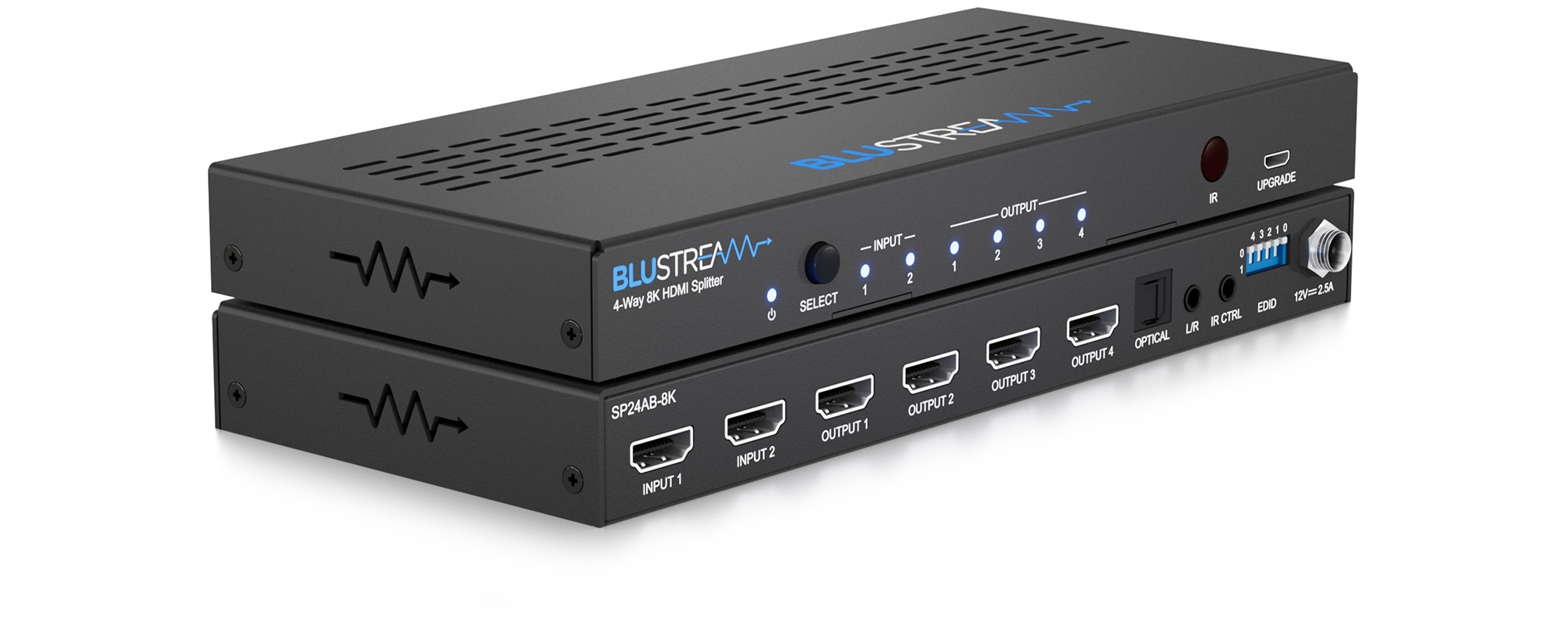 The SP24AB-8K HDMI 2.1 splitter is designed to be used where HDMI 2.1 chipset are being utilised for signals up to 8K 60Hz and 4K 120Hz.